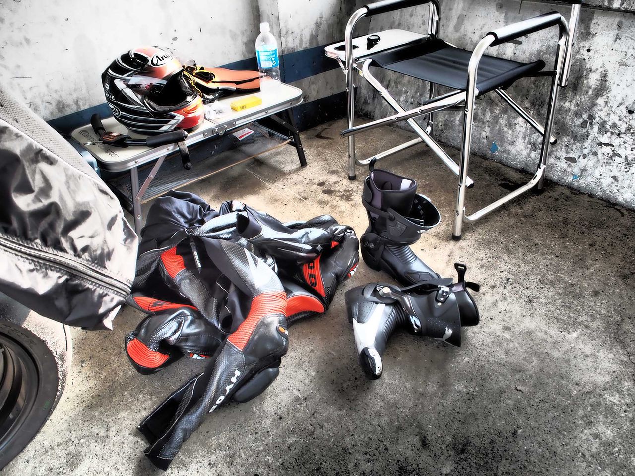 ツナギとブーツを脱ぎ、嬉しそうにポカリスウェットを飲み干しておりました。